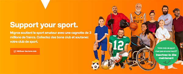 Sous la devise «Nous participons – support your sport», Procap Sport souhaite attirer l’attention sur l’action de promotion des clubs de sport suisses de Migros. En 2021, Migros soutient les clubs suisses de sport amateur avec un financement total de trois millions de francs. Cette somme sera divisée en «bons club» disponibles chez Migros jusqu’au 12 avril 2021. Pour chaque tranche d’achat de 20 francs, vous recevez l’un de ces bons, qui vous permet ensuite de soutenir votre club. Plus un club reçoit de bons, plus sa part de la cagnotte de trois millions de francs augmente. Autrement dit, plus vous incitez de personnes à participer, plus la part de votre club augmentera.