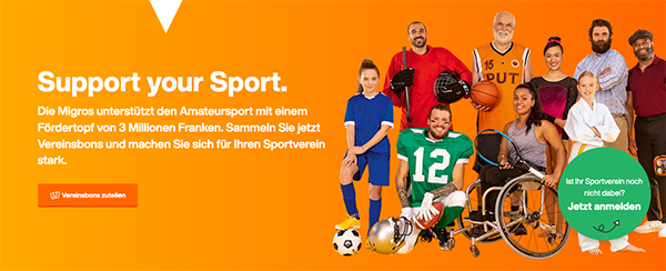 Unter dem Motto «Wir machen mit – support your sport» möchte Procap Sport auf die Förderaktion der Migros für die Schweizer Sportvereine aufmerksam machen. Die Migros unterstützt 2021 Schweizer Amateur-Sportvereine mit insgesamt 3 Millionen Franken. Diese 3 Millionen Franken werden über sogenannte Vereinsbons verteilt, die bis zum 12. April 2021 in der Migros erhältlich sind. Für jeden Einkauf erhalten Sie pro 20 Franken einen Vereinsbon. Mit diesem können Sie Ihren Verein unterstützen. Je mehr Vereinsbons ein Verein erhält, desto grösser wird sein Anteil am 3-Millionen-Franken-Fördertopf. Das heisst, je mehr Leute Sie zum Mitmachen motivieren können, desto grösser wird Ihr Vereinsanteil.