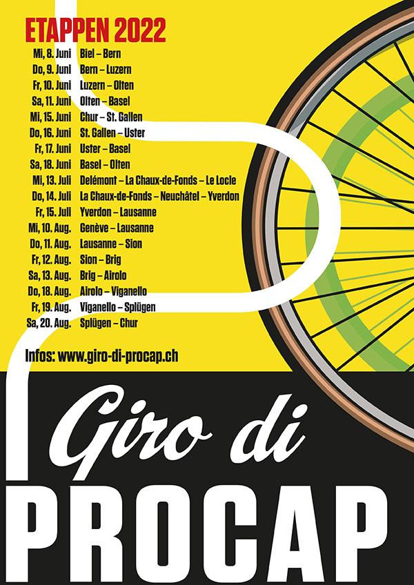 Es ist eine der Kernaufgaben von Procap, die breite Öffentlichkeit für die Anliegen von Menschen mit Behinderungen zu sensibilisieren. Dafür findet zwischen Juni und August 2022 der erste «Giro di Procap» statt. Bei dieser Aktion fährt ein Kernteam von Procap-Velo-Fans in Zusammenarbeit mit verschiedenen Regionen und Sektionen von Procap in 18 Etappen durch die Schweiz.